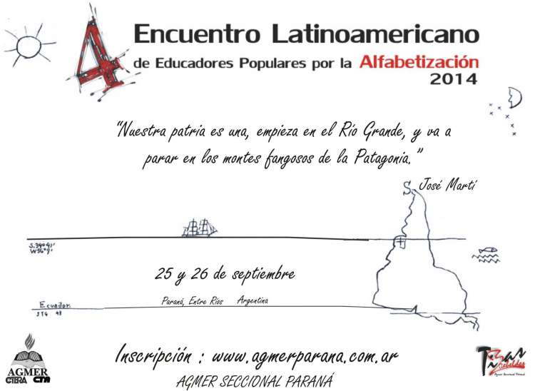 A partir de este jueves 25 y hasta el viernes 26 de septiembre se desarrollará en el Parque Berduc y en numerosas escuelas y facultades de Paraná el IV Encuentro Latinoamericano de Educadores por la Alfabetización Popular, organizado por el equipo de formación pedagógica de Agmer Seccional Paraná. Más de 1.400 inscritos, entre docentes y estudiantes, prometen un encuentro imponente por su masividad, y un programa rico en debates, expositores y experiencias educativas y culturales, promete un encuentro intenso y enriquecedor para los educadores de la región.
