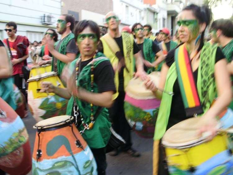 Los integrantes de la cuerda de candombe La Yaguarona, organizadores de la actividad, y los del grupo Danzas Folclóricas Bolivianas, marcharon, ya a la tardecita, por las calles Garay, San Martín y Colón, hasta el Pasaje Baucis, acompañados por vecinos de la ciudad. En ese lugar actuaron Náyades, Cosa de Negros, Integrante Brownie, Samba na Esquina, Huevo de Iguana y Maderas del Río de la Plata, y luego, se inició una fiesta popular.