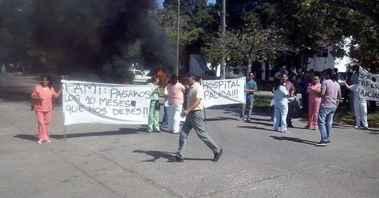 Este miércoles, trabajadores del hospital Pascual Palma cortaron avenida Don Bosco para reclamar por una deuda de 10 meses que mantiene el Pami con el nosocomio, correspondiente al arancelamiento por la atención de los pacientes pertenecientes a esa obra social, que el hospital factura directamente al Pami.