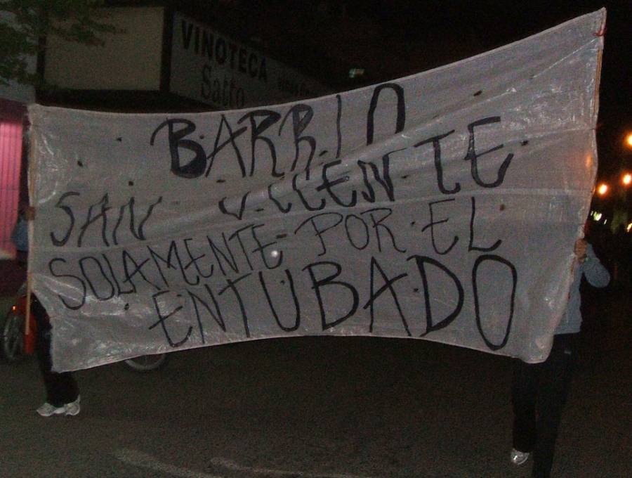 Fueron destinatarios de más de 33 marchas, que incluyeron el corte de las arterias principales de la ciudad, quema de cubiertas, choripaneadas, multisectoriales, denuncias, etcétera. Durante más de un año de manifestaciones (sin contar la lucha histórica de los vecinos, a la que le dieron la espalda todos los gobiernos), se vieron hasta canoas paseando por la ciudad. Mandaron matones para que siguieran a los vecinos de San Vicente, luego de que se realizara una protesta (ver Serenata Bisogniana para choripán y lucha) en la puerta de la casa del intendente. Intentaron frenar la lucha repartiendo colchones y subsidios, aprovechándose de los vecinos que perdieron todo con las inundaciones de sus casas. Realizaron decenas de promesas que no se cumplieron sobre fechas de inicio para dilatar la paciencia de los vecinos. Ofrecieron dinero a los líderes de la lucha para que se desarticulen las protestas. Una vez que la tenacidad de los vecinos demostró ser a prueba de billeteras, intentaron realizar la obra con los trabajadores de las cooperativas sociales, que son los empleados municipales que aunque trabajan nunca se jubilarán. Los vecinos se negaron por las irregularidades que en otras obras públicas se han denunciado, muchas de las cuales ya están deteriorándose.
